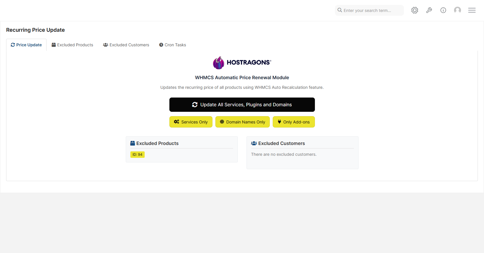 Premium domainler, fiyat bilgilerini çoğunlukla registrar API’lerinden dinamik şekilde çeker. Dolayısıyla bu domanlerin otomatik fiyat güncellemesi için özel bir entegrasyon veya manuel kontrol gerekebilir. Özellikle API bağlantısı olmayan domainler için, modülü devre dışı bırakmanız veya istisna listesine eklemeniz önerilir.